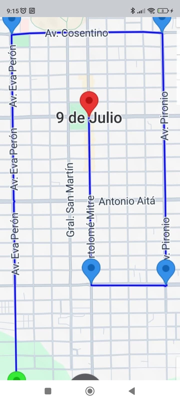 El recorrido es el siguiente: desde el punto de partida se llega hasta Av. Tomas Cosentino, se retoma en Av. Cnal. Pironio hasta Av. Ag. Álvarez y luego al llegar a Av. Mitre, buscando Plaza Gral. Belgrano.