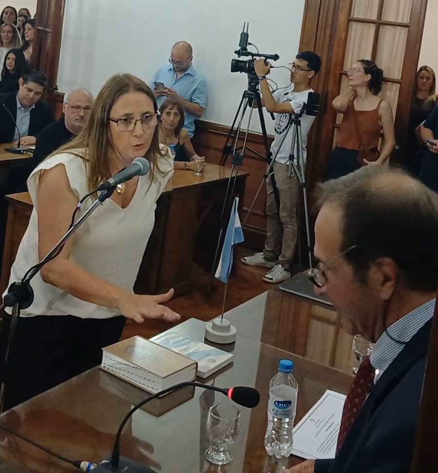 A su turno, la concejal María Elena Defunchio, ya en funciones como presidente del Bloque Fuerza Patria, respondió al edil de LLA, en que «la historia no es una cuestión que debe repetirse, sino también darnos la oportunidad de cambiarla, dicho ello, fue ella quien propuso; obviamente en un común acuerdo entre FP, UCR y Somos, a Esteban Naudin como presidente, al Concejal Cesar García, vice presidente, a la concejal, Marcela Regalia, como segunda vice presidente y secretario, Jorge Delamano, quien ya venia ocupando esa función.