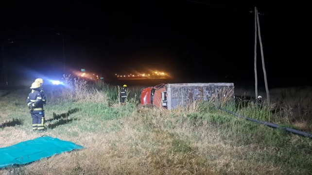 Un camión Mercedes Benz volcó en la madrugada de este miércoles, aproximadamente a las 2 de la mañana, en el cruce de la ruta provincial 65 y el acceso Barnetche.