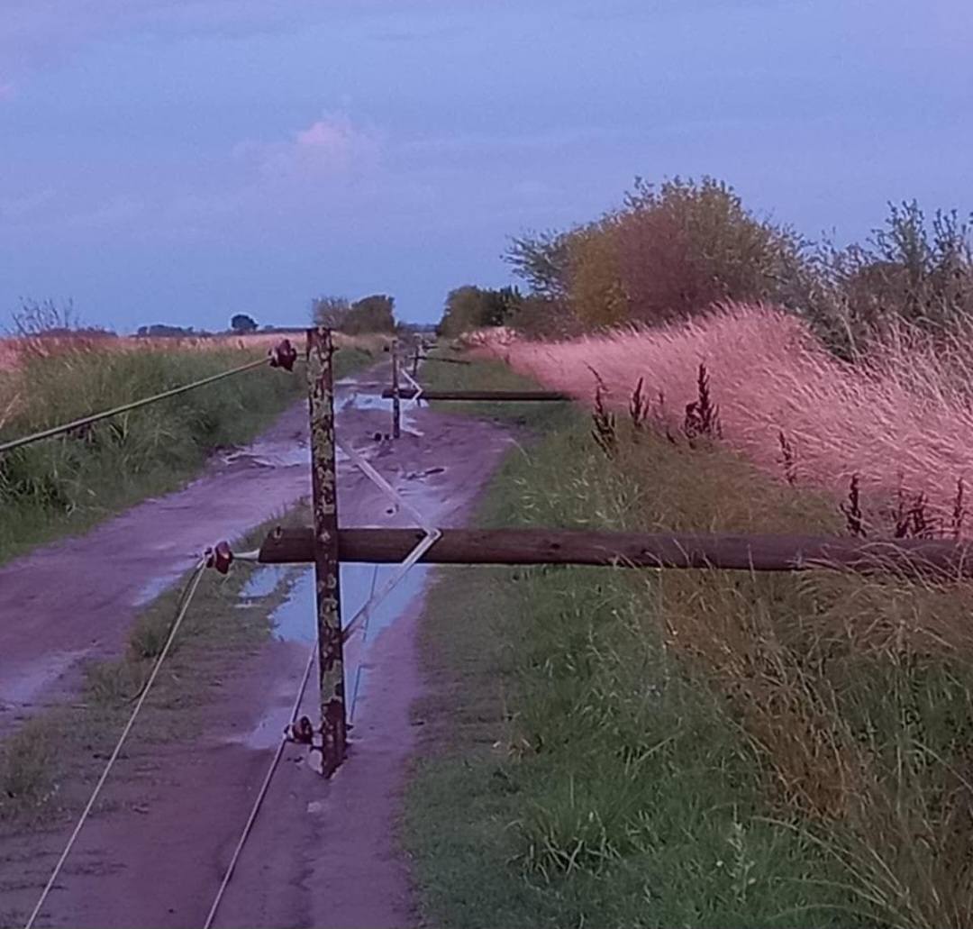 Conforme se conoció mas de 15 postes cayeron y dejo sin luz al pueblo. Desde la mañana de este lunes, personal de la Cooperativa Eléctrica de Dudignac, trabaja en restaurar el tendido, lo que llevara varios días, ya que la zona donde hay que llegar, en parte esta anegada, o caminos muy angostos con canales a los costados, informaron desde la Delegacion municipal