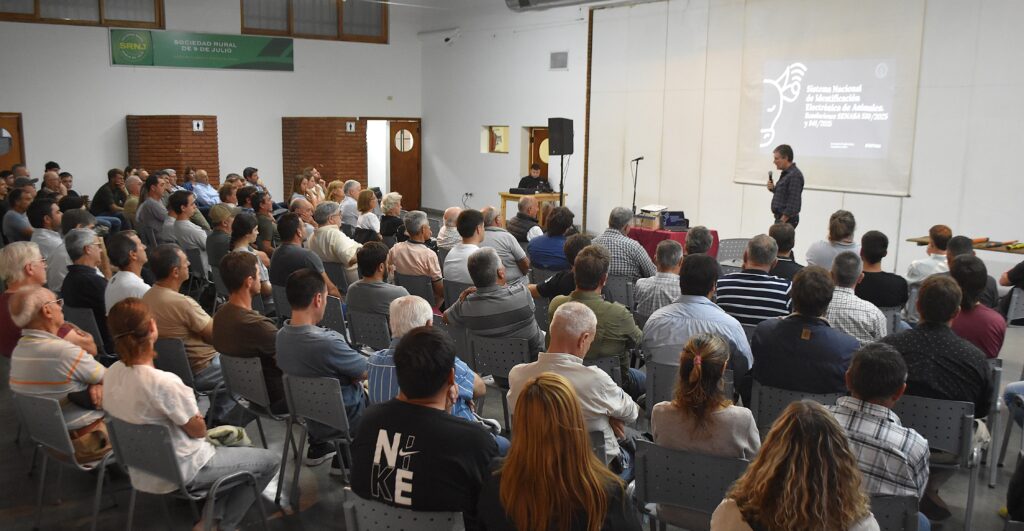 En la última semana más de un centenar de productores ganaderos y veterinarios de 9 de Julio se dieron cita a la jornada convocada por Sociedad Rural de 9 de Julio, junto a Funuesa y la Oficina de Senasa local, donde se abordaron aspectos de la normativa sobre identificación electrónica en el ganado vacuno.