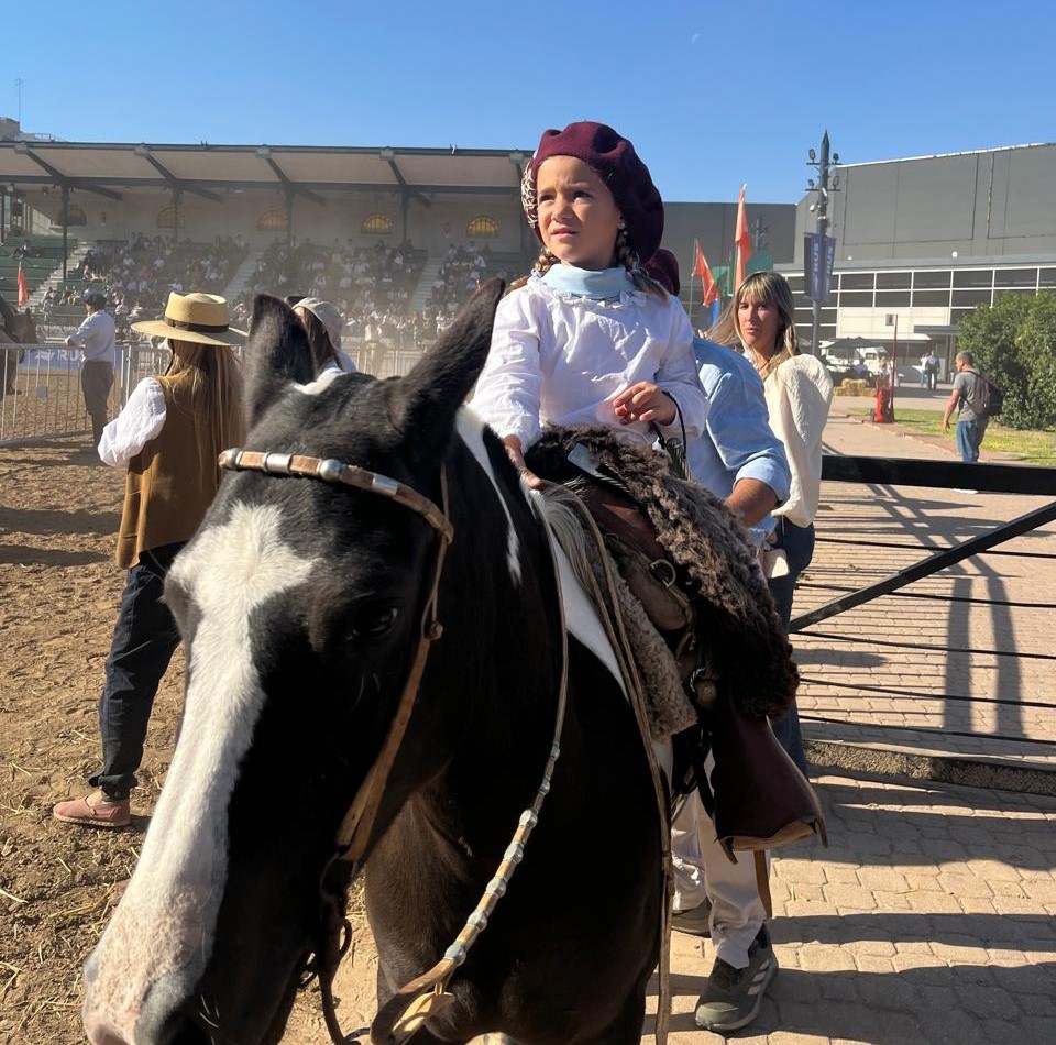 La historia de Clarita con tan solo cinco años se llevo los aplausos y las fotos de quienes pasaron por Nuestros Caballos. La Niña que desarrolla su vida también en el medio rural donde residen sus padres Luciano y Julieta, desde diciembre 2025 comenzó a construir su pasión por los caballos, espíritu que sin duda sus padres,  también llevan adelante. De hecho hoy domingo en el cierre de Nuestros Caballos, su madre, Julieta Corbetta será parte del aparte campero «femenino», una de las actividades muy convocantes, en el mayor encuentro equino del país.