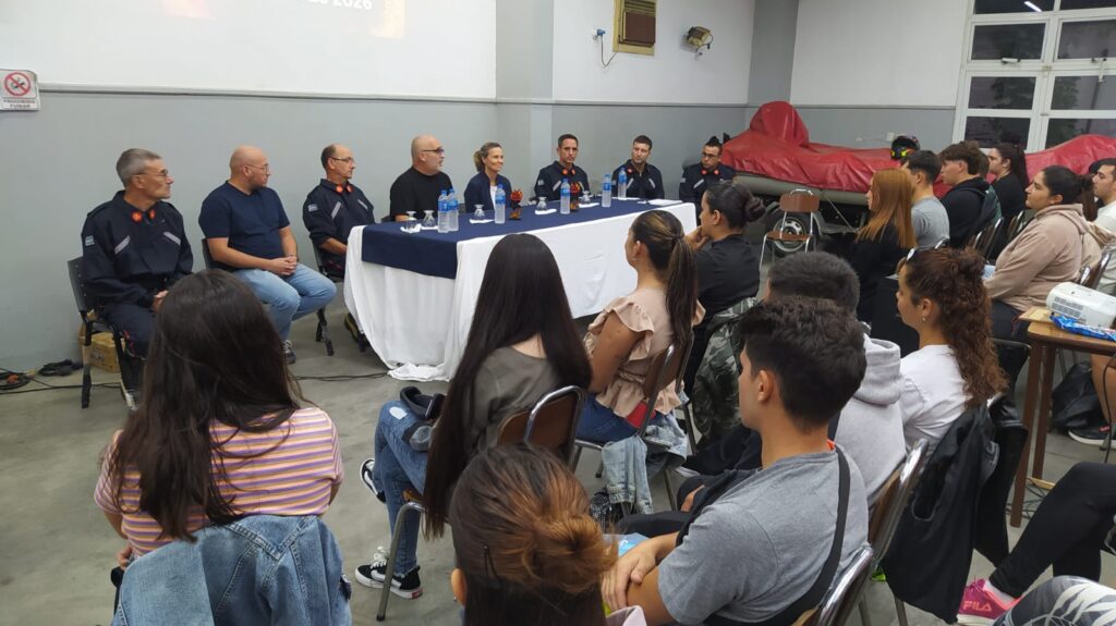 Antes de comenzar a darse la primera clase a cargo del Bombero Santiago Barreau, a cargo del area de capacitacion; se hizo un saludo y bienvenida oficial a los nuevos aspirantes y que estuvo dada por el presidente de la Asociación Cooperadora de Bomberos, Martin del Castillo, el Jefe del Cuerpo, Comandante Sergio Fernández, y la señora Intendente Municipal, María José Gentile, quien valoro la vocación de servicios de los jóvenes.