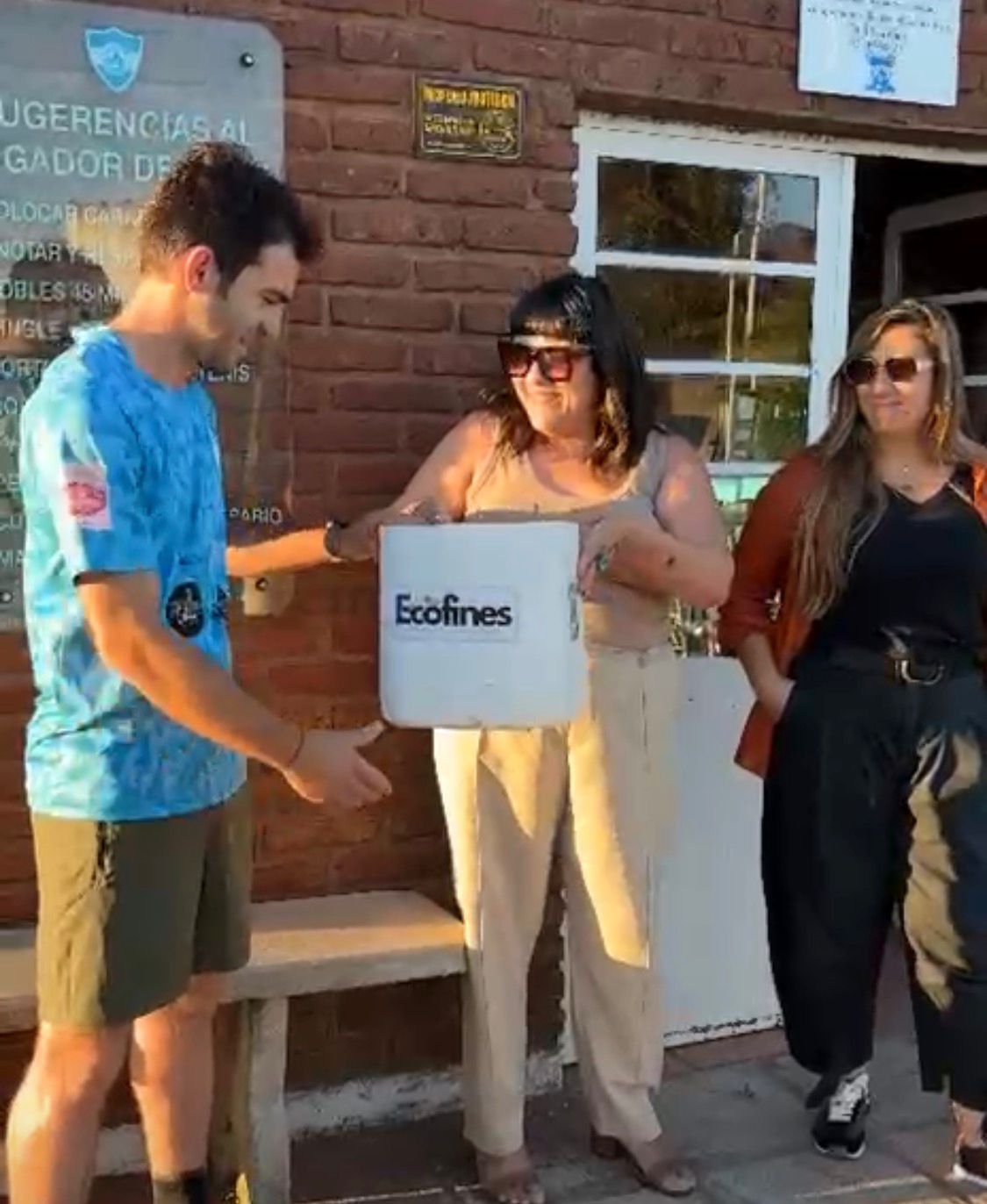 Compromiso ambiental: Alumnos del programa Fines entregaron más de 20 recipientes reciclados a dos clubes de la ciudad