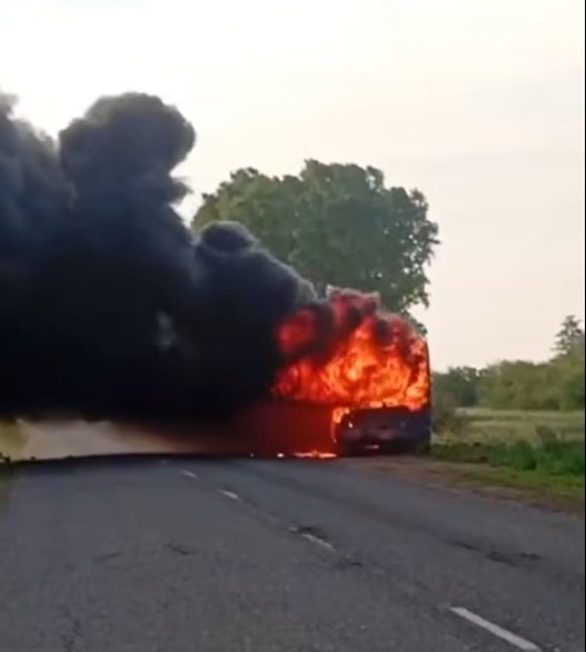 Desgracia con suerte: Un ómnibus que transportaba una delegación de futbolistas de Los Toldos se incendio por completo