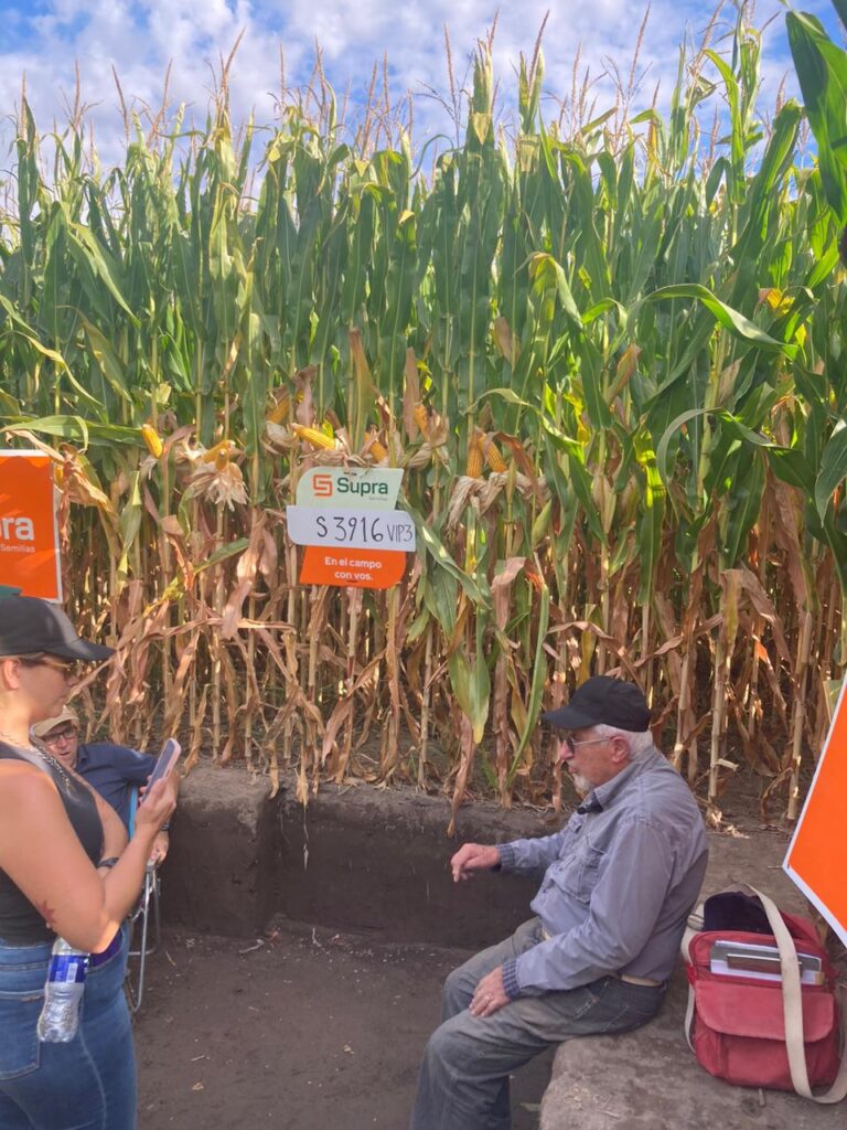 Los sistemas productivos, los maíces de alto rendimiento, el uso de herbicidas ante la emergencia de malezas, la creación de valor que se genera con el uso de pivotes, el uso del riego en cultivos forrajeros, la incorporación de nuevas áreas bajo riego, la suplementación estratégica del ganado con raciones de maíz y la agriculturización de la ganadería fueron tratados exhaustivamente por empresarios, productores y técnicos de la región. Por la tarde, en la chacra de Esperanza SRL en Cervantes, pudieron apreciarse distintos híbridos y manejos a campo, con demostración de uso de maquinaria, drones y hasta la composición del suelo en una calicata.