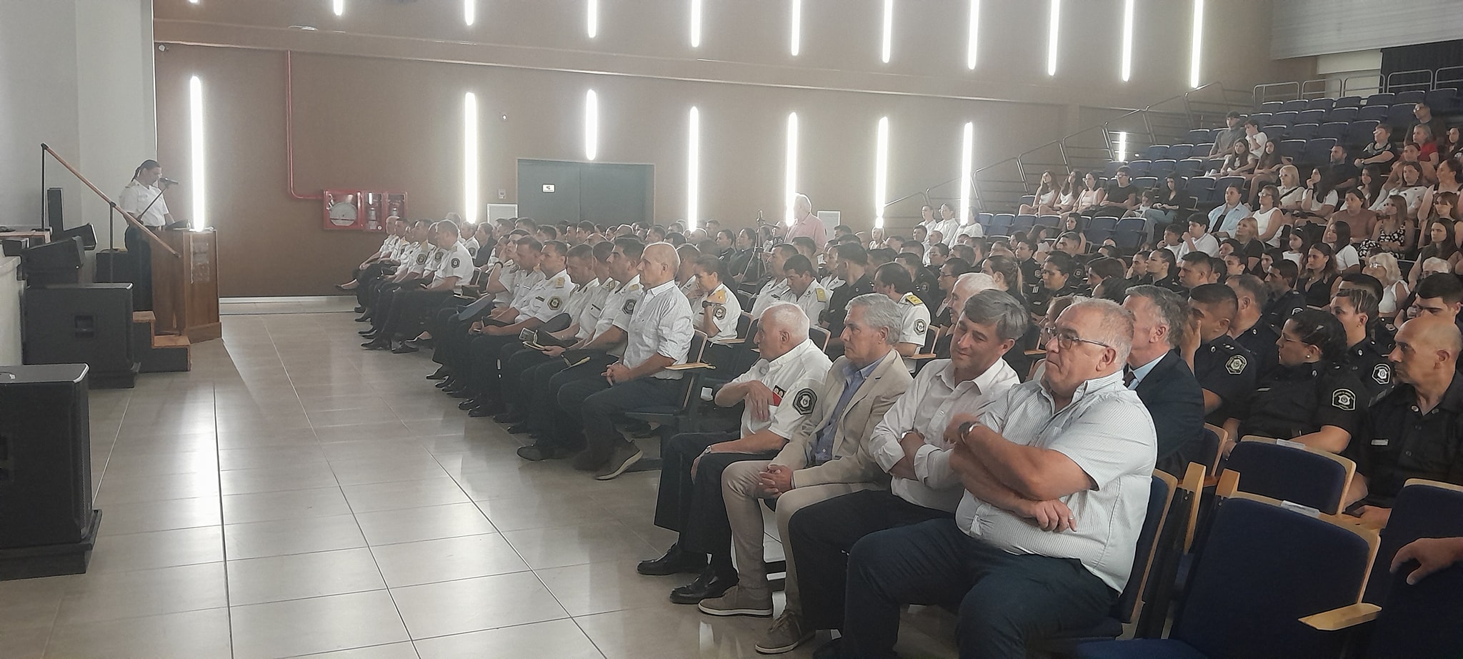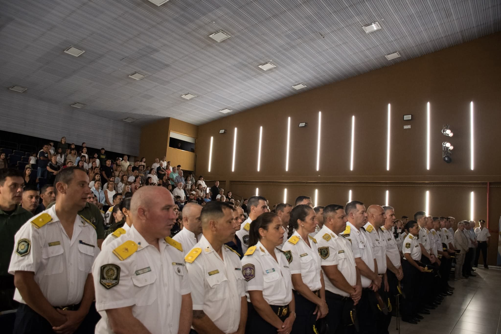 La ceremonia tuvo lugar en el Complejo Cultural Cine Zurro y estuvo encabezada por el Superintendente Regional, Comisario Mayor Adrián Petroni, además de los intendentes Luis Pugnaloni (Hipólito Yrigoyen) y Pablo Zurro (Pehuajó), en representación del municipio de 9 de Julio, asistió el subsecretario de Seguridad de Nueve de Julio, Walter Depaoli, y el secretario de Gobierno de Carlos Casares, Cristian Massone.