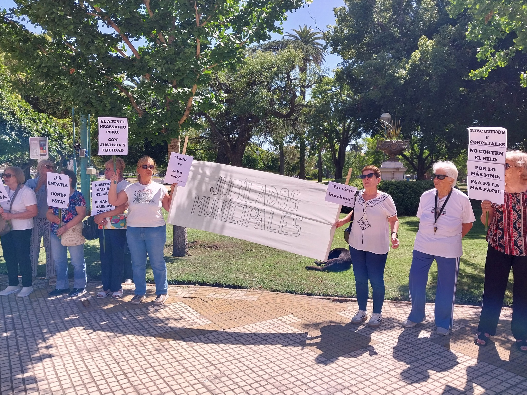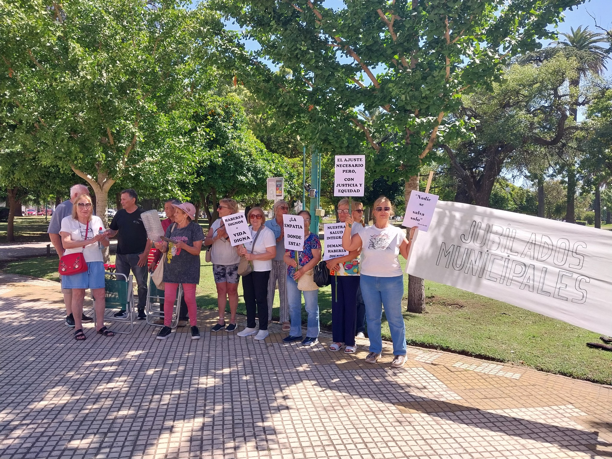 En la media mañana de este viernes, un grupo de vecinos, de manera autoconvocados y diciendo ser jubilados de la Municipalidad de  9 de Julio, se movilizaron en Plaza Gral. Belgrano frente al palacio municipal donde hicieron sentir