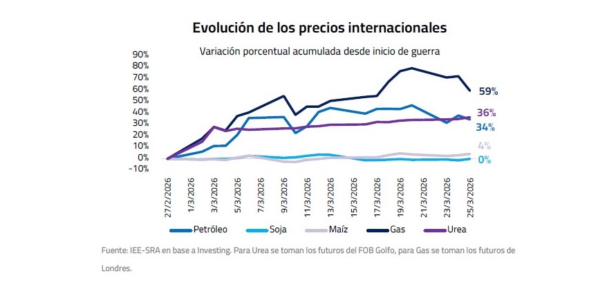 En este contexto, el conflicto introduce presión sobre los costos agrícolas en Argentina a través de dos canales principales: