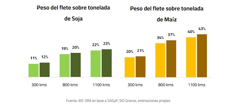 - La incidencia del flete en maíz pasa de 20% a 21%.