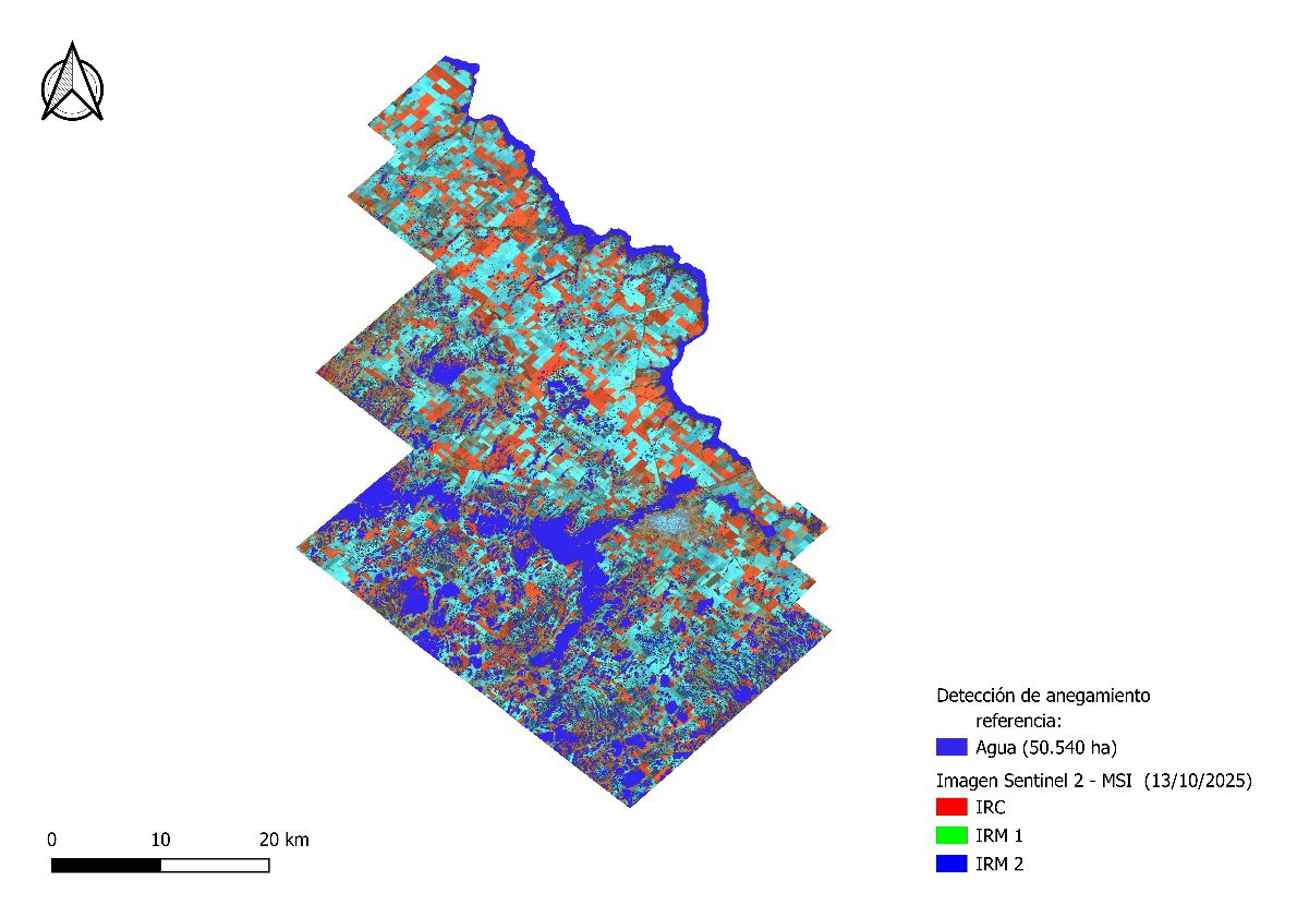 La metodología utilizada permite detectar con mayor precisión áreas con agua en superficie. Zonas anegadas con presencia de vegetación desarrollada y saturadas pueden ser omitidas debido a la interferencia de la vegetación.