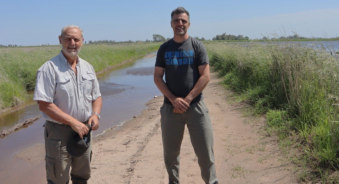 «La situación que te venimos a contar más allá del del agua acumulada, que tenemos por inundación, es sobre lo que está haciendo el canal de la Sofía- 12 de Octubre. El problema que tenemos nosotros toda esta zona es que viene desbordando en todos lados y viene llenando todos los bajos, y pasando el agua por arriba de los puentes. Y ahora el problema más grande que tenemos es que acá atrás tenemos 12 de octubre a 100 metros, sintetizo el productor de la la localidad, Alejandro Vallan, junto a otro productor vecino, Pedro Ruggeroni.