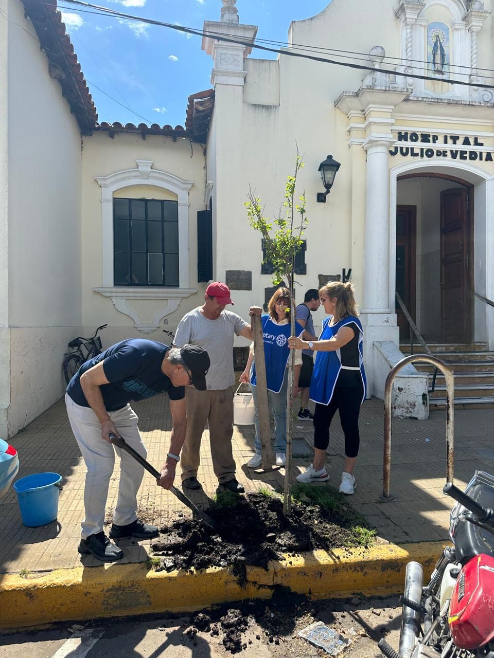 Rotary Club procedió a la implantación de arboles en la vereda del Hospital