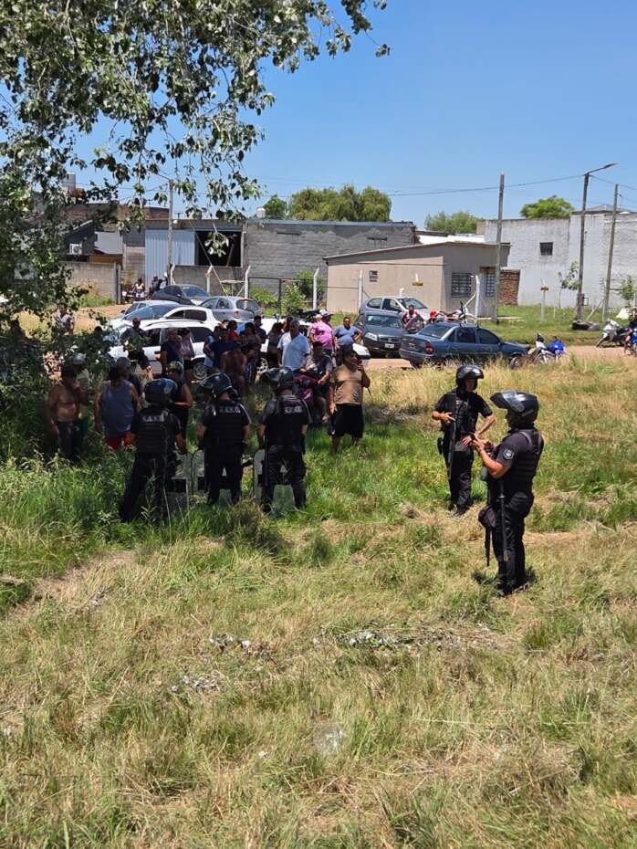 Los uniformados debieron pedir refuerzos ya que se veían superados en número mientras intentaba evitar que las personas se acerquen a la zona del siniestro.