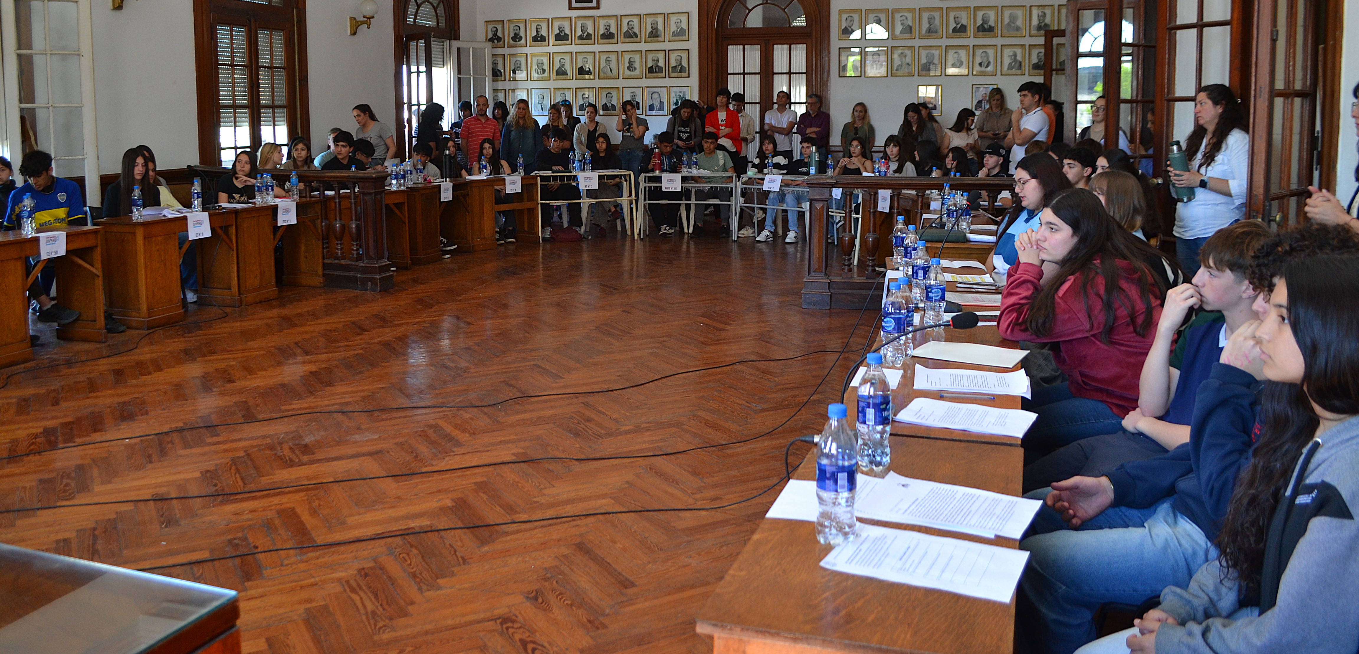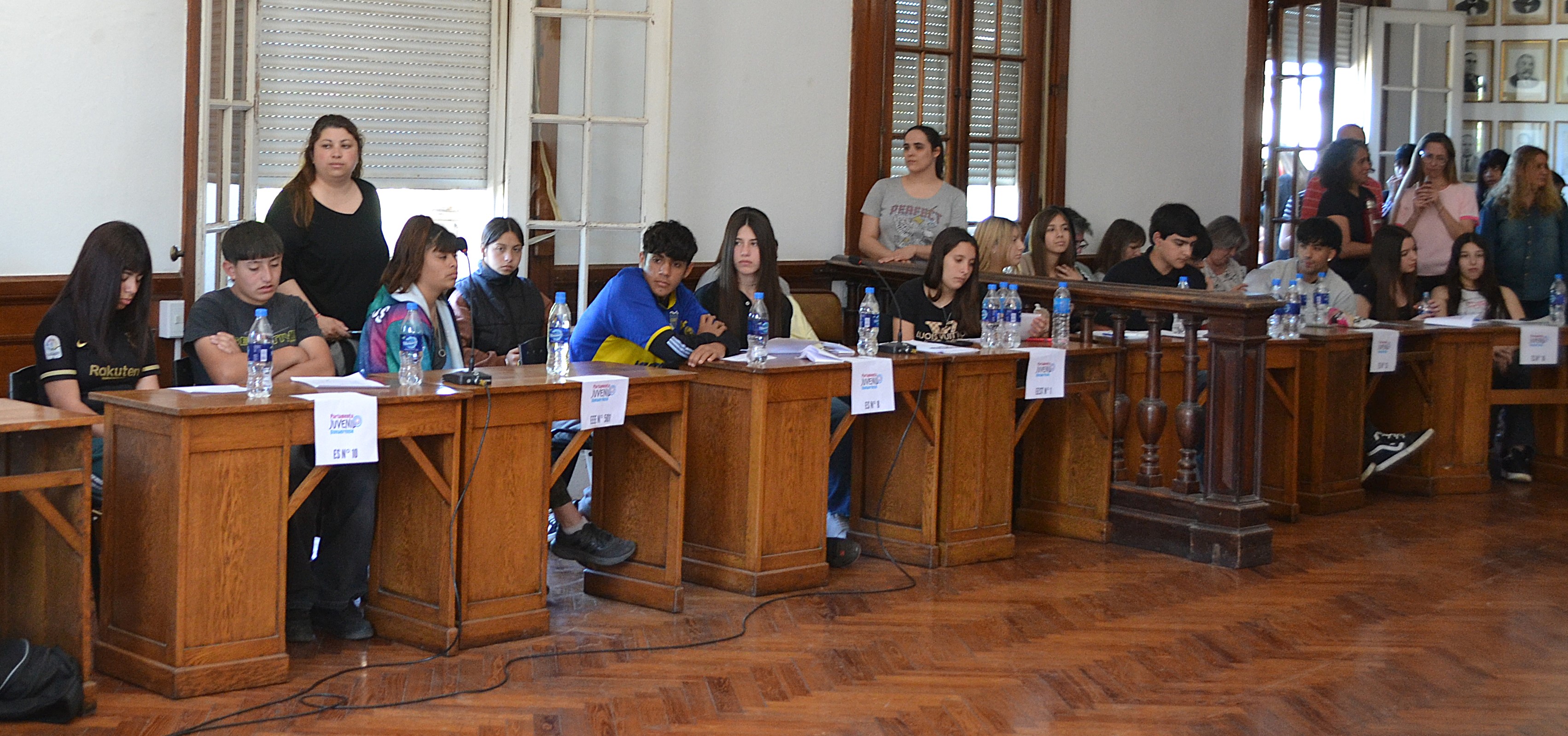 La sala del Consejo Deliberante del partido de 9 de Julio fue el escenario este martes 30 para una sesión mas del Parlamento Juvenil a cargo de alumnos el nivel Secundario del distrito donde trataron distintos temas de interes para los adolescentes.