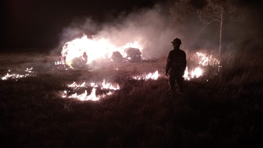 Una unidad de Bomberos Voluntarios de 9 de Julio acudieron en la noche de este domingo, minutos antes de las 20:30hs. a sofocar un incendio de rollos de pastos, quienes al llegar se encontraron con un foco generalizados en rollos de pasto.