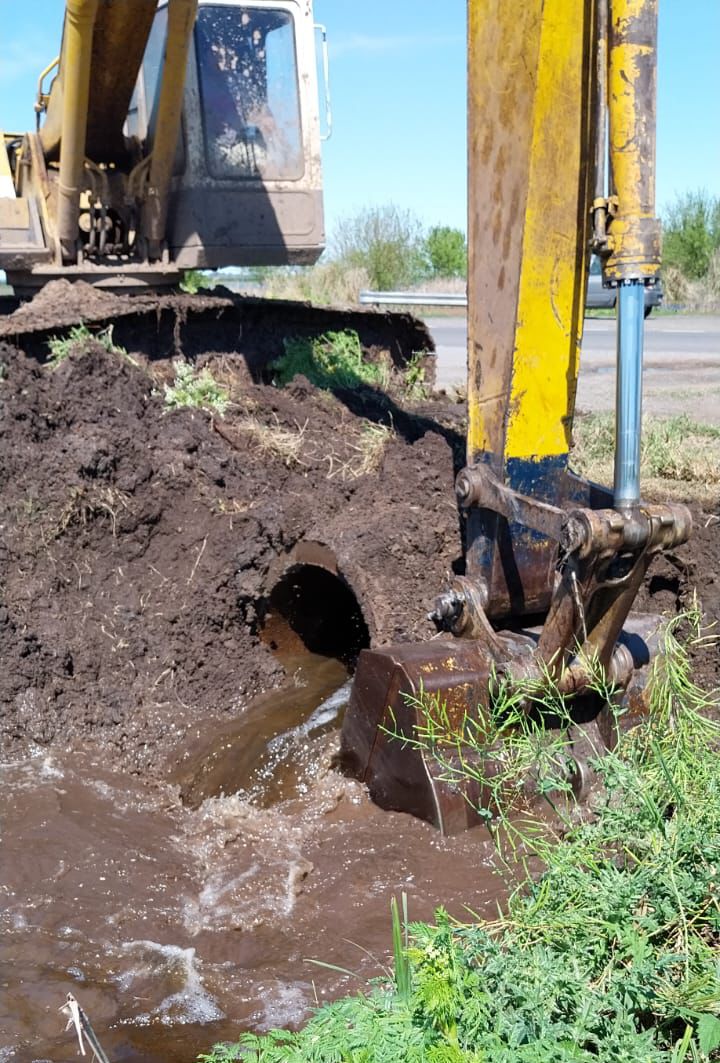 En la mañana de hoy, la Municipalidad de Nueve de Julio, a través de la secretaría de Obras y Servicios Públicos, realizó trabajos de recambio de alcantarillas y limpieza de canales en la zona de Ruta Provincial 65 y Ruta 70 (Acceso a Carlos María Naón y El Tejar), donde se presenta, al igual que en otros puntos del distrito donde también se trabaja con dferentes maquinarias, una compleja situación hídrica.