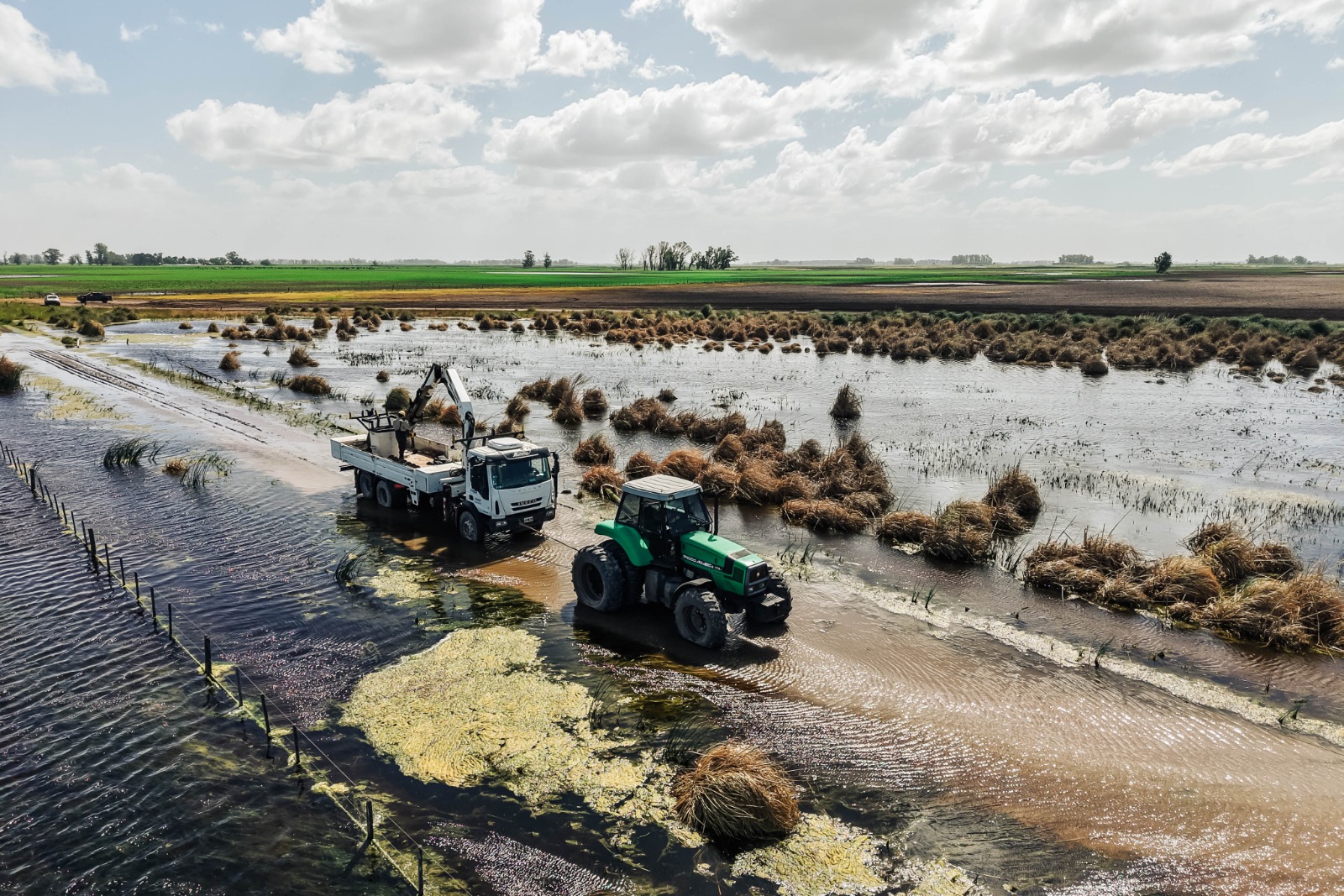 Durante la tormenta, la Guardia del Sector Eléctrico no se detuvo. En Carlos María Naón, los técnicos siguieron su trabajo en una de las zonas más afectadas por la tormenta y las inundaciones: caminos anegados, postes caídos y barro que complica cada paso.