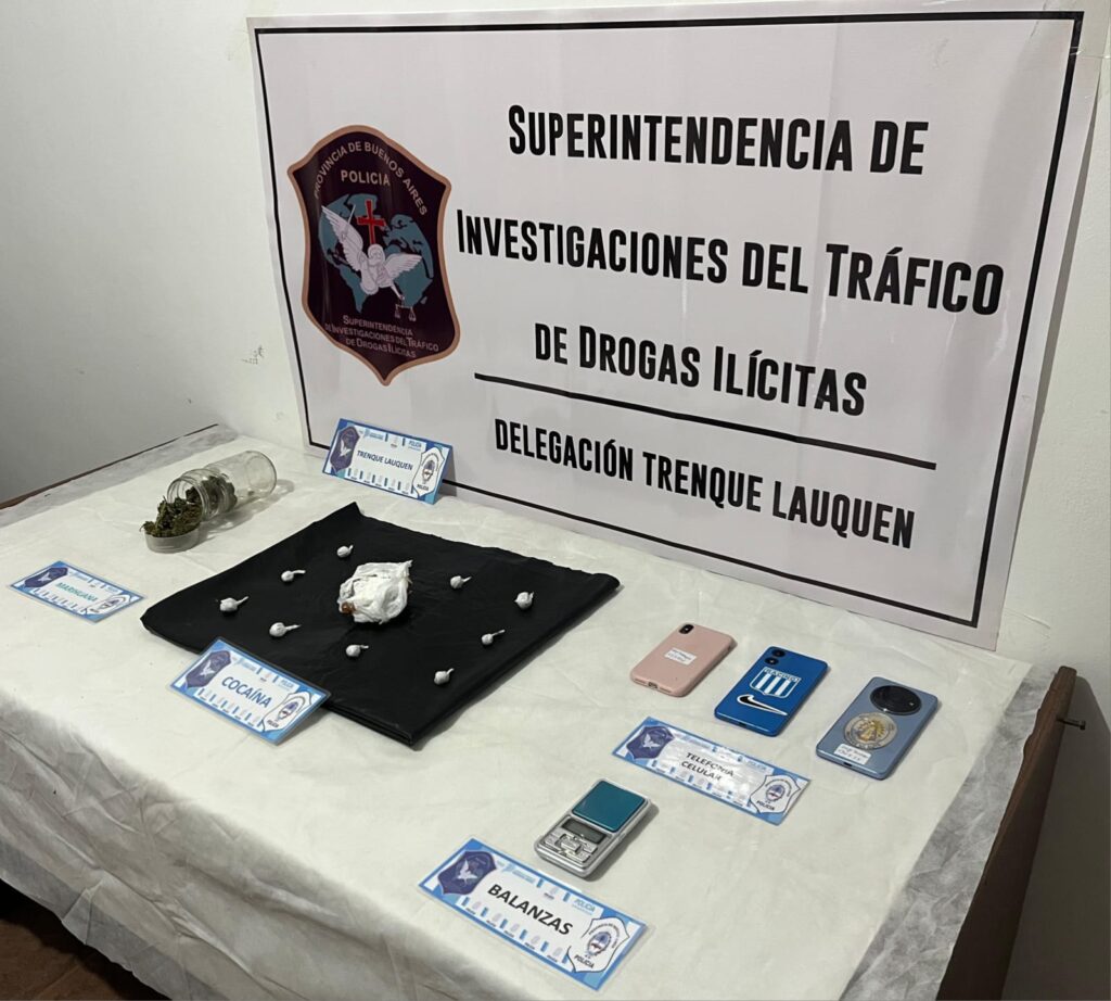 La Delegación Departamental de Investigaciones del Tráfico de Drogas Ilícitas Trenque Lauquen, informa que el día 20 de Octubre de 2025, a las 21:30 hs. aproximadamente efectivos pertenecientes a la Delegación nombrada, juntamente a efectivos dependientes de la Comisaria Primera de Trenque Lauquen, y DDI Trenque Lauquen, activan un dispositivo de observación de manera encubierta en inmediaciones de la terminal de ómnibus de la ciudad, como asimismo acceso Garcia Salinas, llevando a cabo de esta manera, la interceptación de una femenina mayor de edad, la cual descendió de un micro proveniente de la ciudad Lujan.