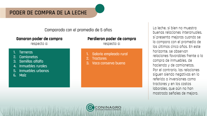 CONINAGRO presentó su informe mensual que analiza el poder de compra de seis productos clave de la producción agropecuaria en Argentina: soja, maíz, trigo, ternero, novillito y leche. Este indicador mide la capacidad de estos productos para adquirir una amplia gama de insumos, costos e inversiones del sector agropecuario, que incluyen herbicidas, fletes y maquinaria, y 20 variables más que se analizan.