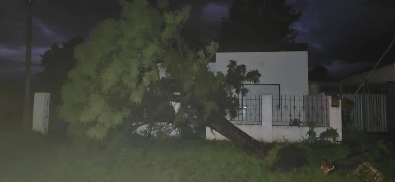 También en Daireaux se reportaron caídas de árboles en algunos establecimientos rurales que, al menos en un caso, generó daños para un vehículo que quedó aplastado por un árbol arrancado.
