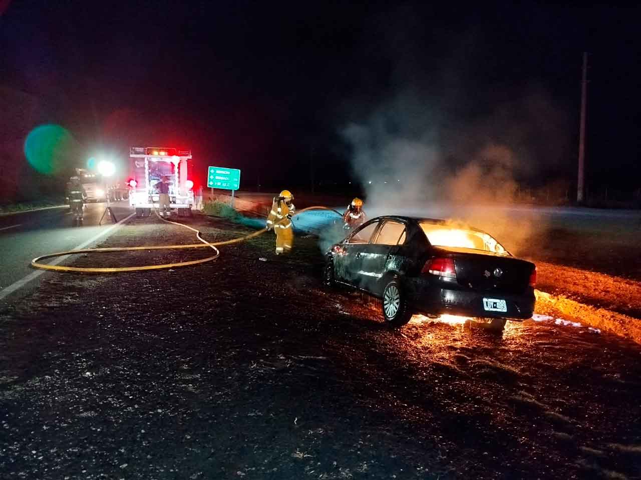En un primer momento, se indicó que el siniestro era a la altura del kilómetro 121, frente al establecimiento Los Moros (ex Haras Puci), pero al llegar al lugar no se halló tal evento.
